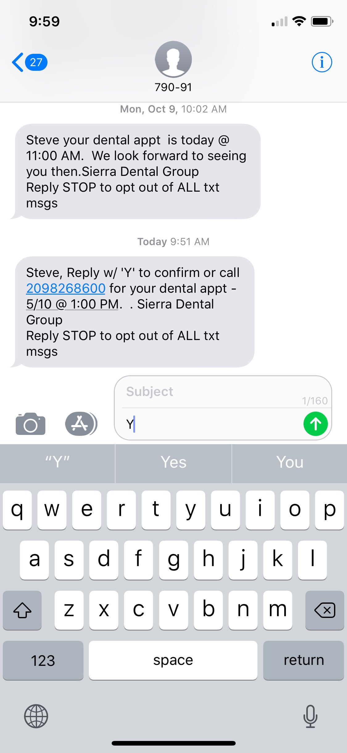 Text messaging is the preferred way of confirming appointments for most of our patients, as they don’t have to interrupt their busy day to take a call.